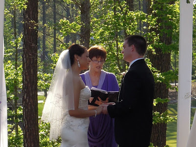 Then I told the guests all about how Tyler and Irene met back in August of 2005 at a sports bar in Chapel Hill when Tyler was in dental school at UNC. Irene noticed him first but Tyler was glued to the TV watching a ballgame and did not notice her. A year later in a similar scenario, Tyler took note of this beautiful woman and asked their mutual friend and fellow dental student, Avni, one of our bridesmaids, to put in a good word for him which she was happy to do. Their first date was at a pool hall where Tyler discovered that Irene was a very good pool player and told me that date "sealed the deal" for him!After the vows were made, it was time for the veil and cord sponsors to come forth and place the veil over the bride's head and around the groom's shoulders.
